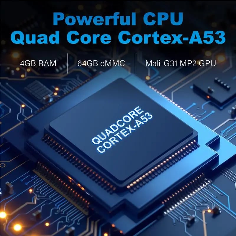 "💡 Unmatched Performance: With a Quad-Core Cortex-A53 CPU, 4GB RAM, and 64GB storage, this device ensures smooth multitasking and reliable performance for apps, games, and streaming."